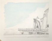 白を基調とした建物のため、昼の姿はあえて鉛筆のみで描き、最低限の影はのみをつけるようにしました。